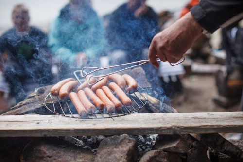 Korvgrillning över öppen eld